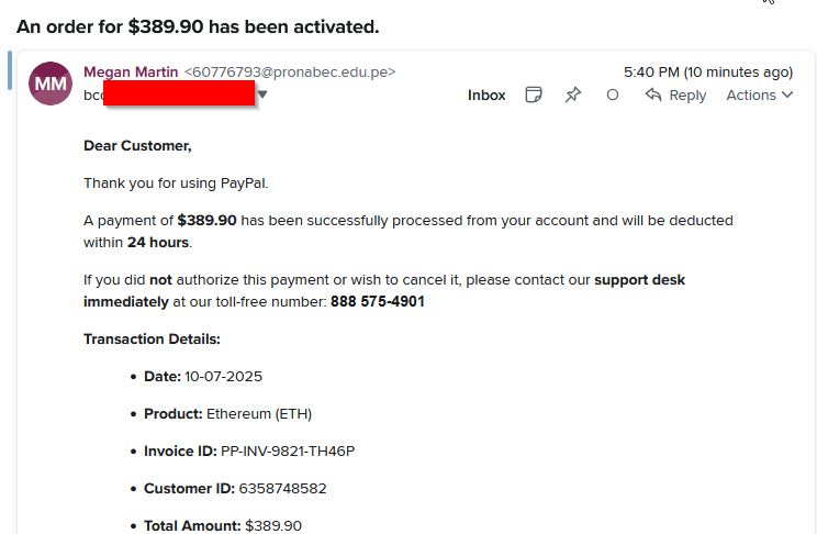 October 7, 2025October 7, 2025Guides PayPal scam: An order for $389.90 has been activated. ⚠️ SCAM ALERT ⚠️ This message is a scam. Do NOT call the toll-free number listed (888-575-4901). It is a phishing attempt […]